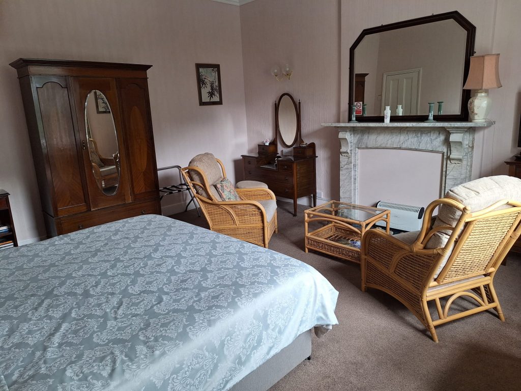 The Master Room A spacious south facing double room overlooking our front gardens. Beautifully furnished with a Victorian suite and super-king size bed, can be converted into 2 large singles, a large en-suite bathroom with a shower over the bath.
